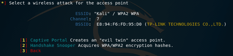 Select the Tool that will create the access point. The authors recommend avoiding airbase-ng if you use the same WiFi card both to create an access point and for deauthentication (jamming):